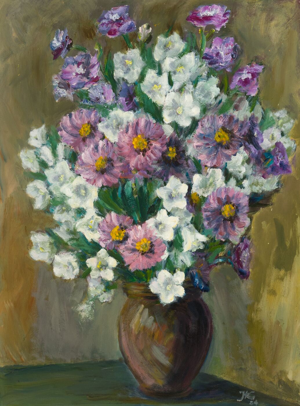 Stillleben sind eine bedeutende Gattung der Malerei, die alltägliche Objekte und Blumen darstellt, um Schönheit und Vergänglichkeit zu thematisieren, wie in diesem lebhaften Arrangement.