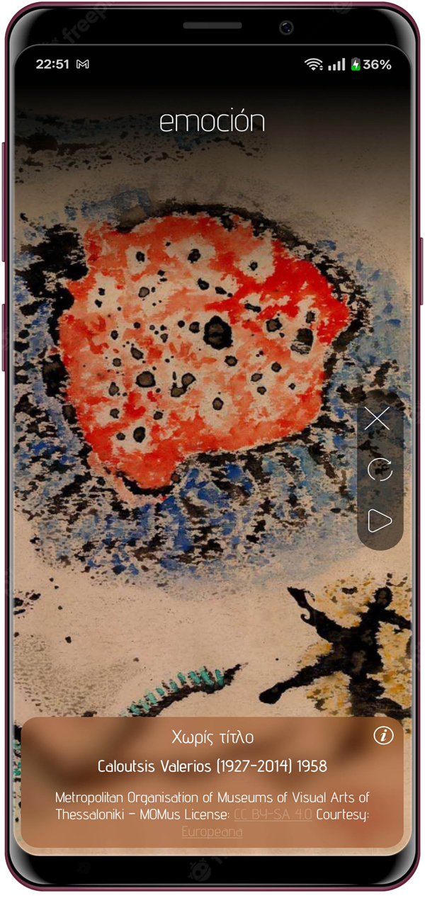 Estos hilos pueden revelar colores y estados de ánimo, conectar la imagen con la ciencia, la psicología o la música, o sugerir obras relacionadas extraídas de los extensos archivos culturales europeos. Lo que recibes no es una lección, sino un espejo — un reflejo único moldeado por tu interacción con la imagen.
