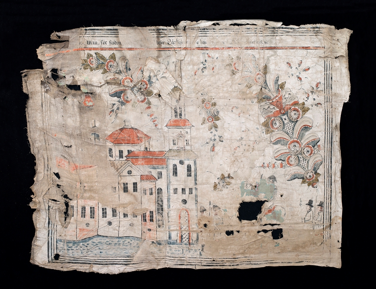 Oljemålning från Brunnsta, dansande allmogepar, tidigt 1800-tal