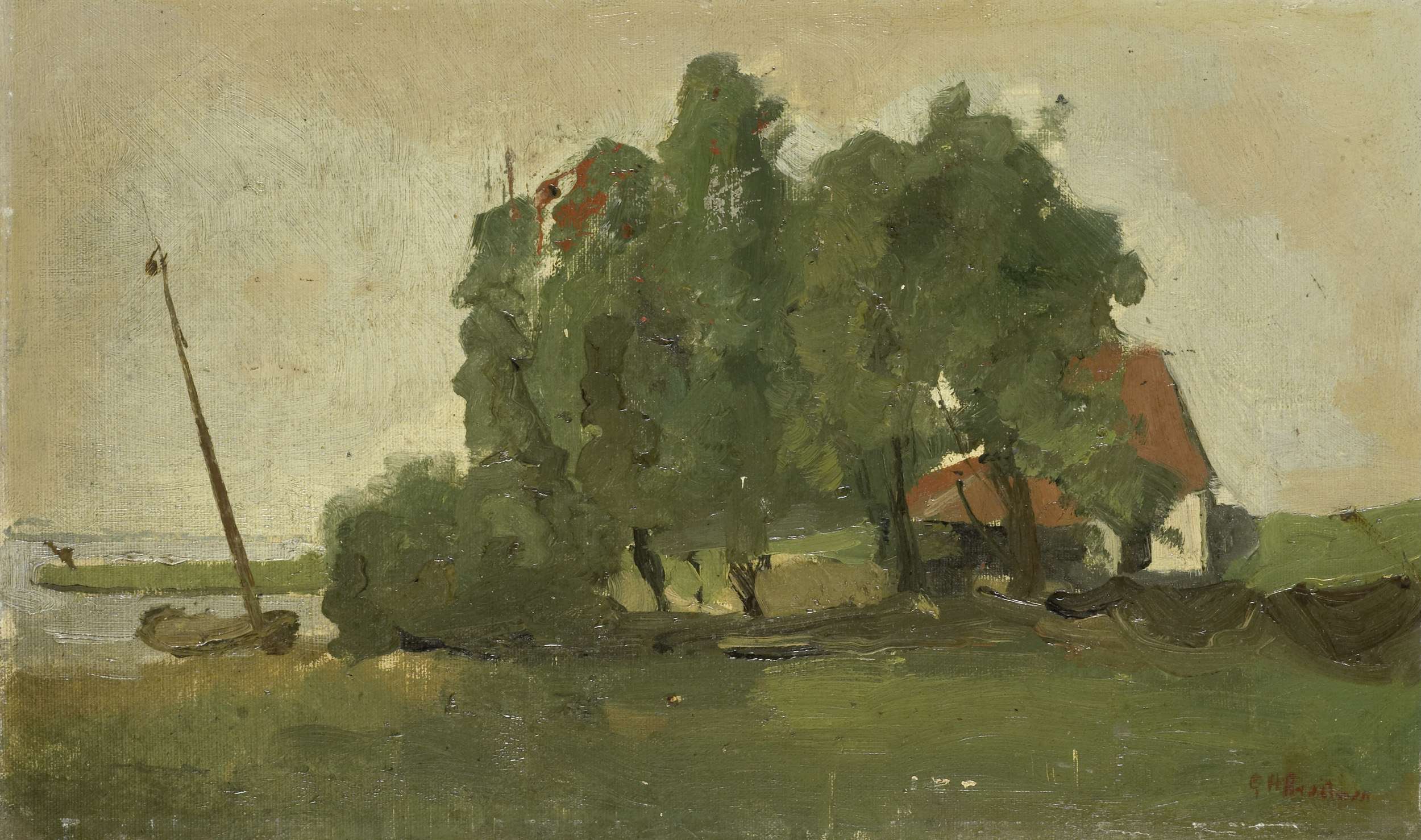 The calm water and soft colors evoke a sense of peace, suggesting a tranquil moment by the riverside.