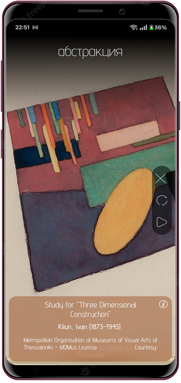 Получай «нити» — динамические связи между произведением и более широкими культурными, научными и эмоциональными контекстами. Узнай, как твое изображение перекликается с идеями из психологии, музыки, литературы, или свяжи его с похожими работами из базы культурного наследия Europeana.